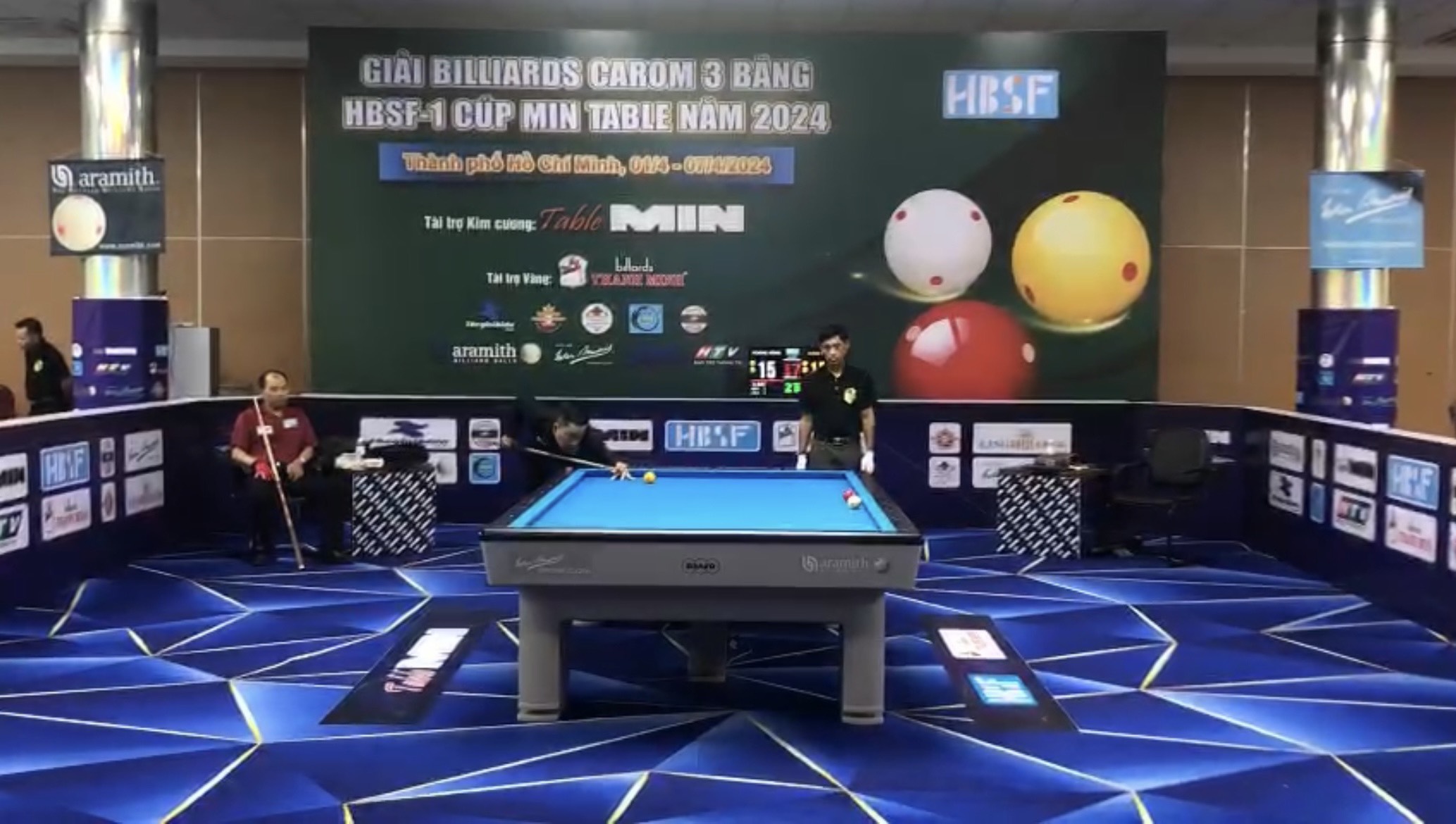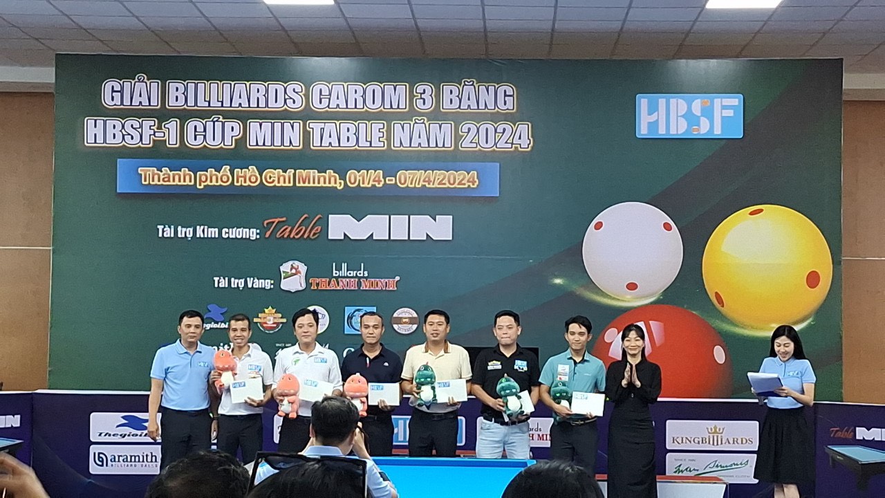 Billiards Carom 3 băng HBSF-1 Cúp Table MIN mở màn cho chuỗi giải đấu xuyên suốt năm 2024 của Liên đoàn Billiards & Snooker Thành phố Hồ Chí Minh (HBSF) từ ngày 01/04/2024 – 07/04/2024 tại Trung tâm Dịch vụ Thể dục Thể thao – Số 215C Lý Thường Kiệt, Phường 15, Quận 11.