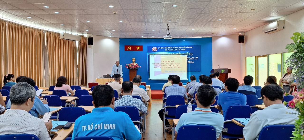 Chương trình Lớp Đào tạo, bồi dưỡng nghiệp vụ chuyên ngành Quản lý Thể dục Thể thao được tổ chức từ ngày 28/5/2024 đến 30/5/2024. Có khoảng 80 học viên tham gia lớp đào tạo là đại diện các đơn vị sự nghiệp thuộc Sở Văn hóa và Thể thao Thành phố; đại diện Phòng Văn hóa Thông tin; đại diện Lãnh đạo Trung tâm Văn hóa – Thể thao, Trung tâm TDTT, Trung tâm Văn hóa, Thể thao và Truyền thông các quận, huyện và thành phố Thủ Đức; đại diện các Liên đoàn thể thao Thành phố, đại diện các tỉnh, thành có ký kết liên tịch với Thành phố Hồ Chí Minh. Các học viên đã được cung cấp những thông tin, kiến thức bổ ích, thiết thực nhằm phục vụ cho công tác chuyên môn thông qua việc truyền đạt các chuyên đề trong chương trình của lớp do các giảng viên phụ trách như: ông Phạm Cao Thái – Vụ trưởng Vụ Pháp chế Bộ Văn hóa, Thể thao và Du lịch, PGS.TS Lê Thiết Can – Giảng viên cao cấp Viện Nghiên cứu khoa học và Công nghệ thể thao, ông Nguyễn Nam Nhân – Phó Giám đốc Sở Văn hóa và Thể thao Thành phố Hồ Chí Minh và ông Nguyễn Thành Loan Mười – Phó Chánh Thanh tra Sở Văn hóa và Thể thao Thành phố Hồ Chí Minh.