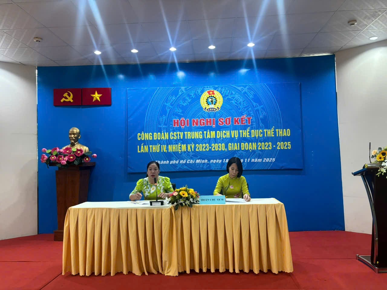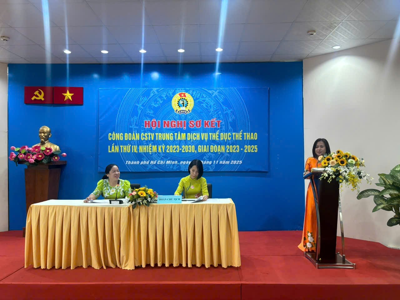 Vào ngày 18/11/2025, Trung tâm Dịch vụ Thể dục Thể thao tổ chức Hội nghị sơ kết Công đoàn CSTV Trung tâm Dịch vụ Thể dục Thể thao lần thứ IV, giữa nhiệm kỳ 2023 – 2030, giai đoạn 2023 – 2025 (gọi tắt là Hội nghị). Tham dự Hội nghị gồm có: đồng chí Phan Thanh Tuấn – Phó Chủ tịch Công đoàn CS Sở Văn hóa và Thể thao; đồng chí Nhan Thị Thị Hồng Thắm – Bí thư Chi bộ Sự nghiệp TDTT, Giám đốc Trung tâm Dịch vụ Thể dục Thể thao và toàn thể công đoàn viên đơn vị.