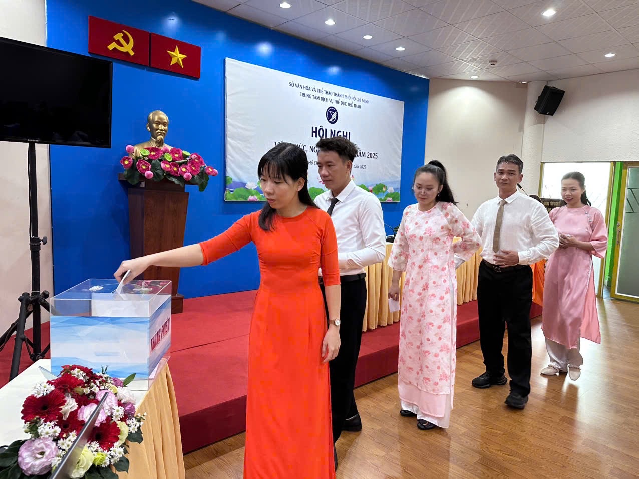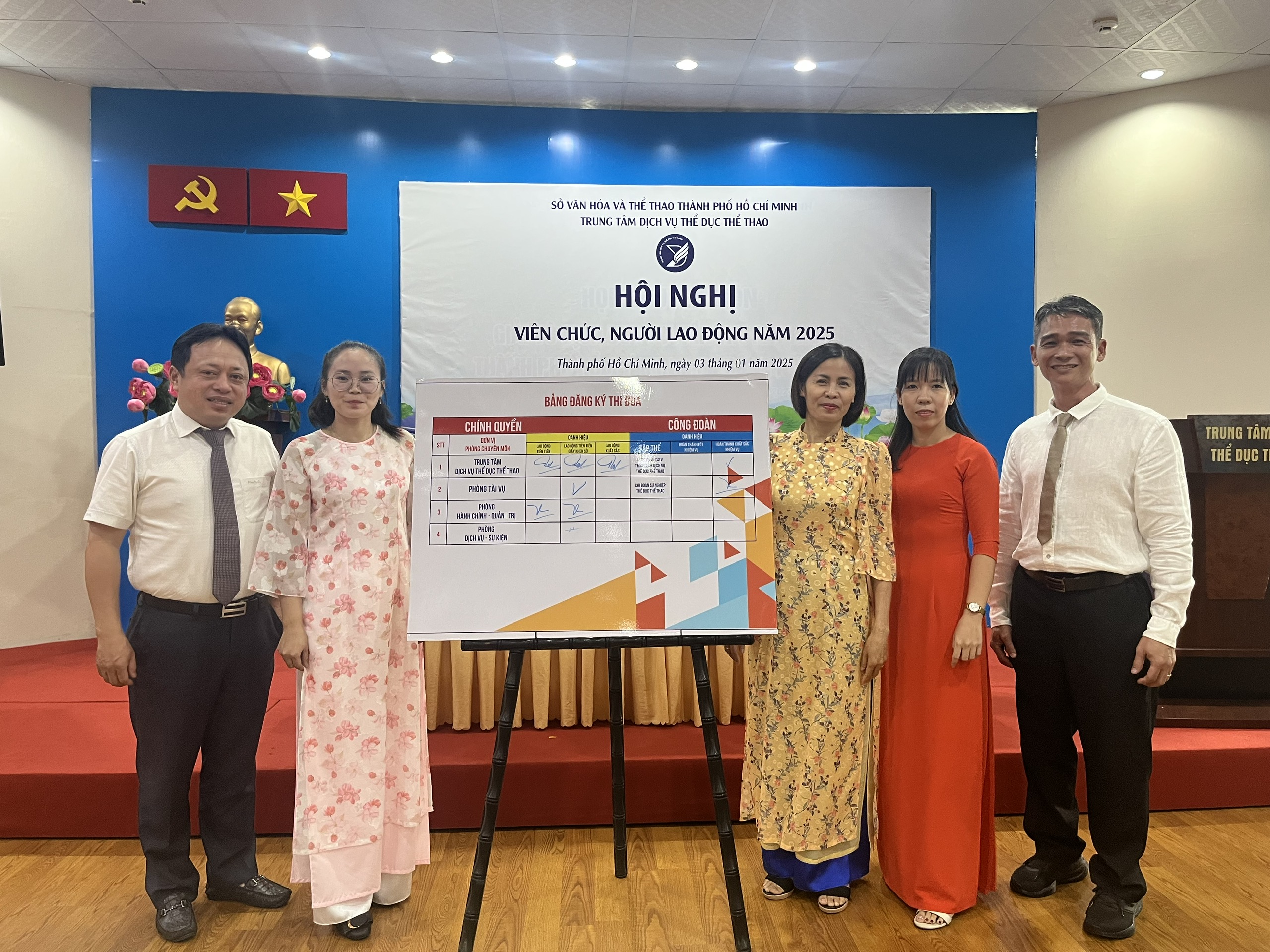 Sau thời gian làm việc nghiêm túc, Hội nghị viên chức, người lao động năm 2025 của Trung tâm Dịch vụ Thể dục Thể thao đã thành công tốt đẹp.