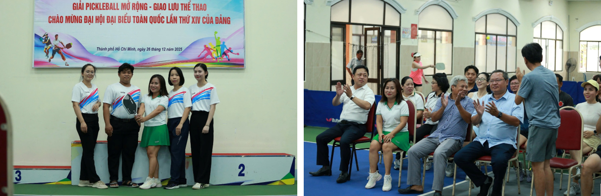 Vào ngày 26/12/2025, Chi bộ Sự nghiệp Thể dục Thể thao đã tổ chức thành công Hội thao “Giải Pickleball mở rộng – Giao lưu Thể thao” chào mừng Đại hội đại biểu toàn quốc lần thứ XIV của Đảng với nội dung thi đấu môn Pickleball tại Cơ sở 2 – 215C Lý Thường Kiệt, Phường Phú Thọ. Hội thao là hoạt động thiết thực nhằm đẩy mạnh phong trào rèn luyện thể dục thể thao, tạo sân chơi lành mạnh, bổ ích; đồng thời tăng cường sự giao lưu, đoàn kết giữa các đảng viên, viên chức, người lao động thuộc các đơn vị sự nghiệp trong Khối Thể thao. Qua đó, góp phần tạo khí thế thi đua sôi nổi, lập thành tích chào mừng các sự kiện chính trị trọng đại của đất nước.